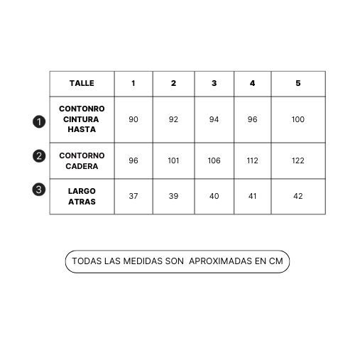 Tabla de medidas aprox